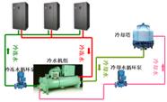 冷冻水系统主要由冷水机组、冷却塔、冷冻水泵、冷却水泵以及通冷冻水型专用空调末端组成。系统采用集中式冷源,冷水机组制冷效率高,冷却塔放置位置灵活,可有效控制噪音并利于建筑立面美观,达到一定规模后,相对于直接蒸发式系统更有建造成本和维护成本方面的经济优势。