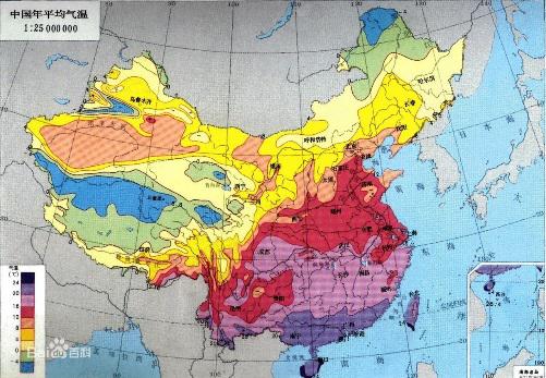 图9 我国年平均气温分布度