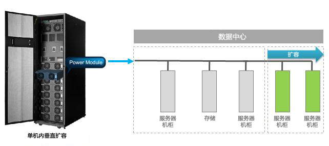 1. 随需扩容:模块化UPS可以配合机房扩容的脚步,适时增加电源模块的数量,不需要在机房建置初期投入大量的资金,并且不占据多余的机房空间,使机房业务逐步成长时,黄色美女网站仍可“无缝接轨”(图2);除了增加电源模块,UPS也必须满足多机并联的需求,以因应机房规模扩大的可能性。