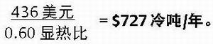 第二点比较是再加湿成本,通过计算每产生1 冷吨显冷量的同时,会产生的潜冷量来确定。