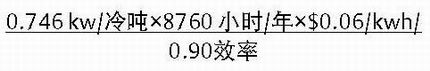 首先,计算一冷吨制冷量的机组运行一年的成本: