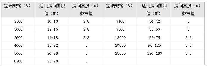 注:变频机相应机型,适用面积可大些(附表中面积的1.2~1.3倍)。